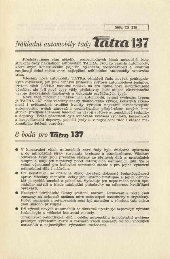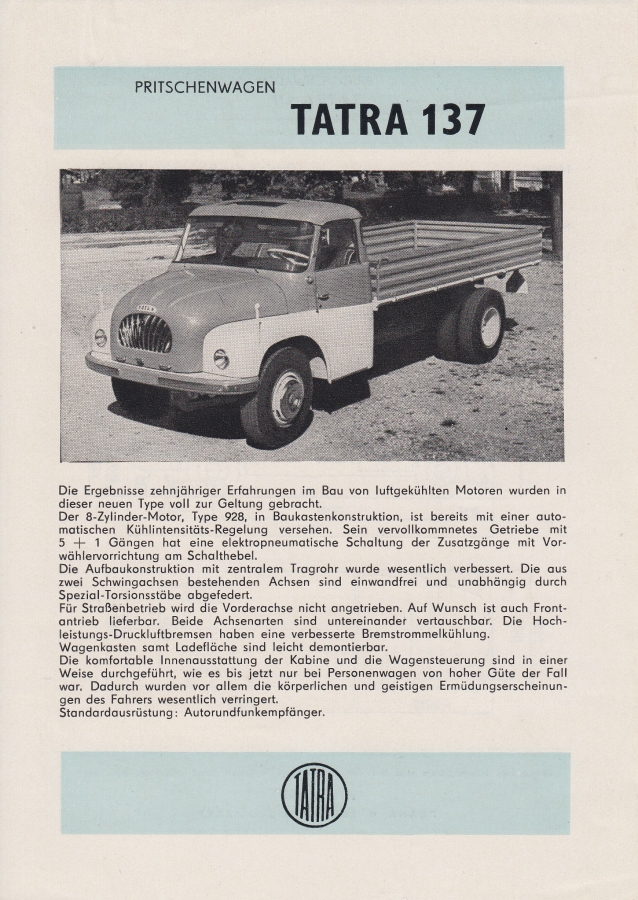 Tatra 138, Tatra 137 - prospekty